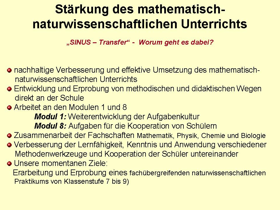 SINUS: Stärkung des mathematisch-naturwissenschaftlichen Fächerkanons